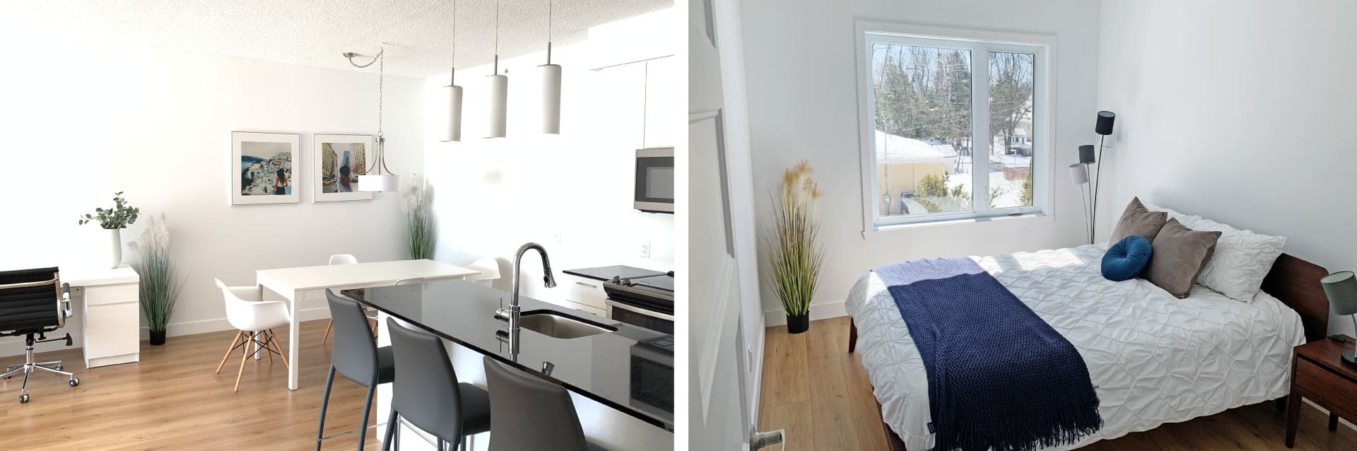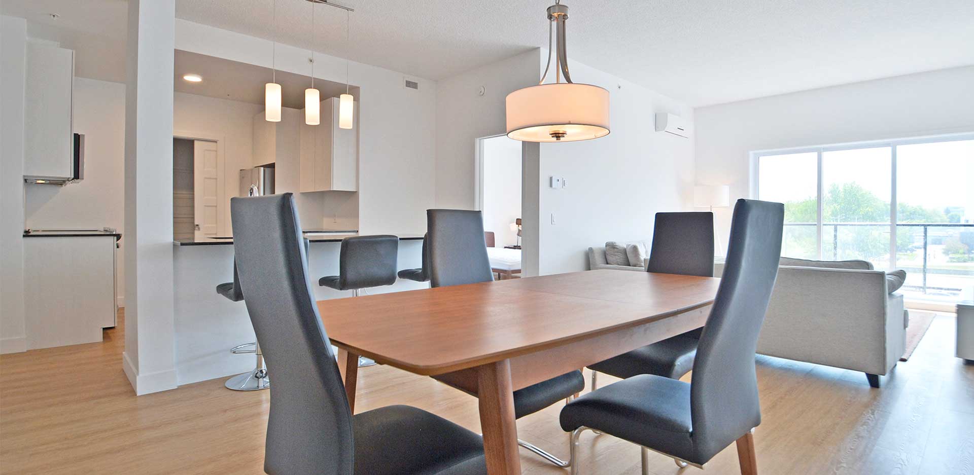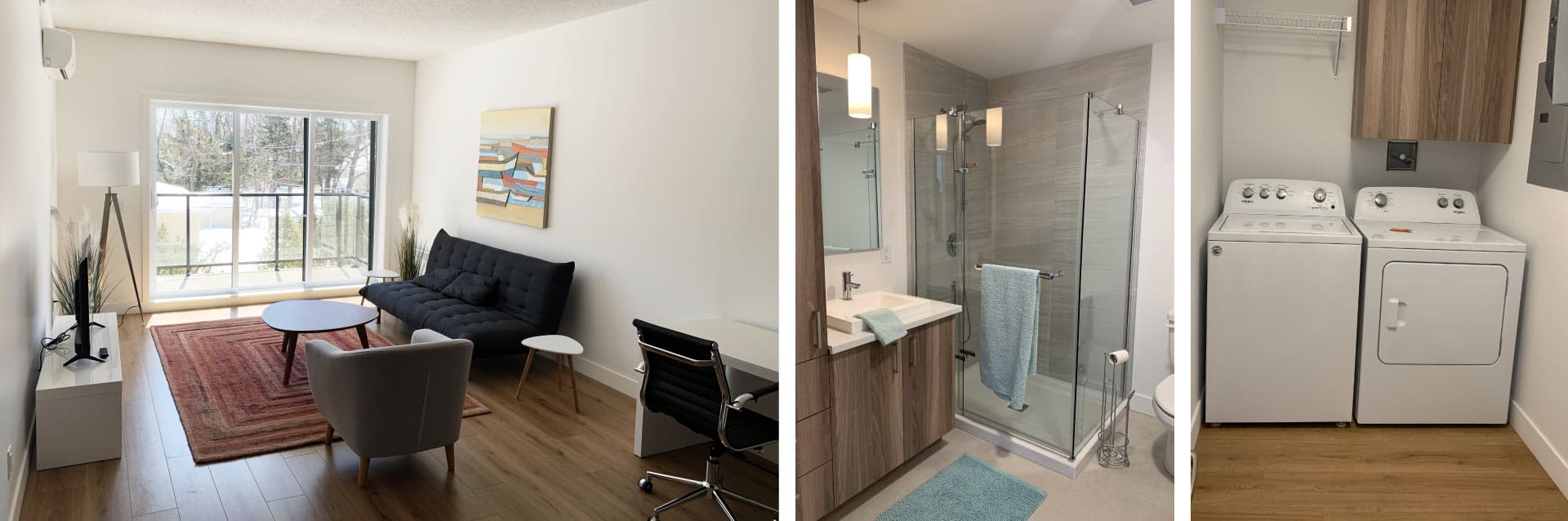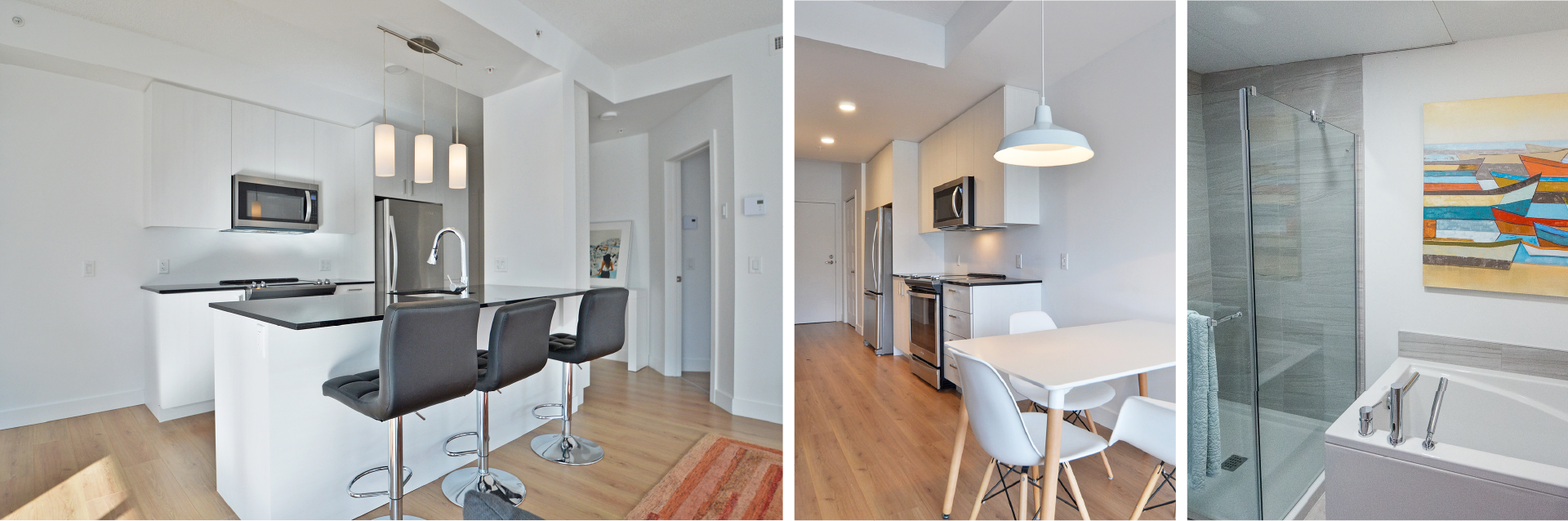 Une construction haut de gamme de style contemporain avec structure de béton. Nos studios, 3 ½, 4 ½, 5 ½ sont très bien éclairés et les plafonds de 9 et 9,5 pi apportent une dimension supplémentaire à la pièce.