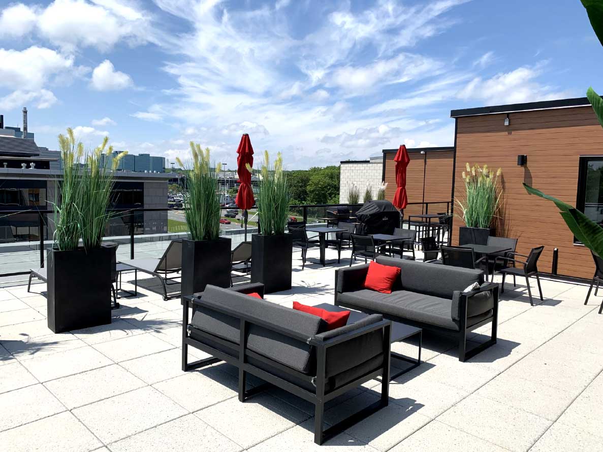 Un magnifique coin détente au toit est aménagé pour les locataires du Charles Huot qui désirent profiter des belles journées pour se rencontrer sur la terrasse extérieure.